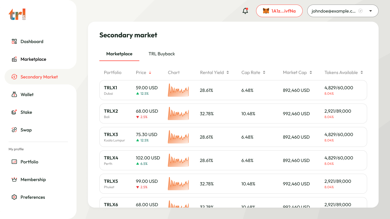 TRL aims to empower investors by providing the opportunity to liquidate their tokens instantly or trade asset tokens in a more decentralized manner. This feature enhances liquidity and flexibility, allowing investors to respond quickly to market conditions and capitalize on new opportunities. By facilitating seamless trading and instant liquidation, we enable a more dynamic investment experience, ensuring that our users have the tools they need to manage their portfolios effectively and maximize their returns.