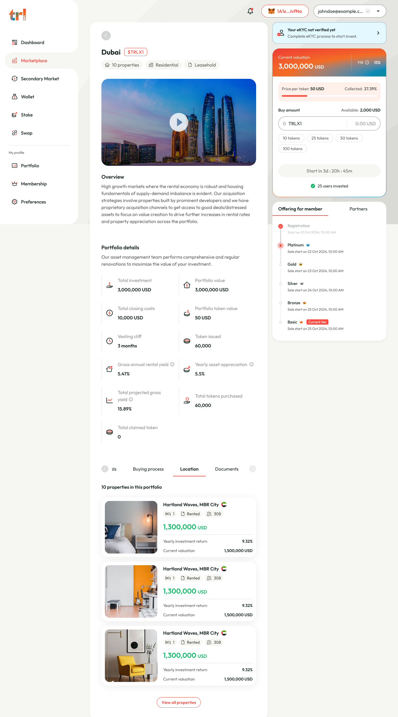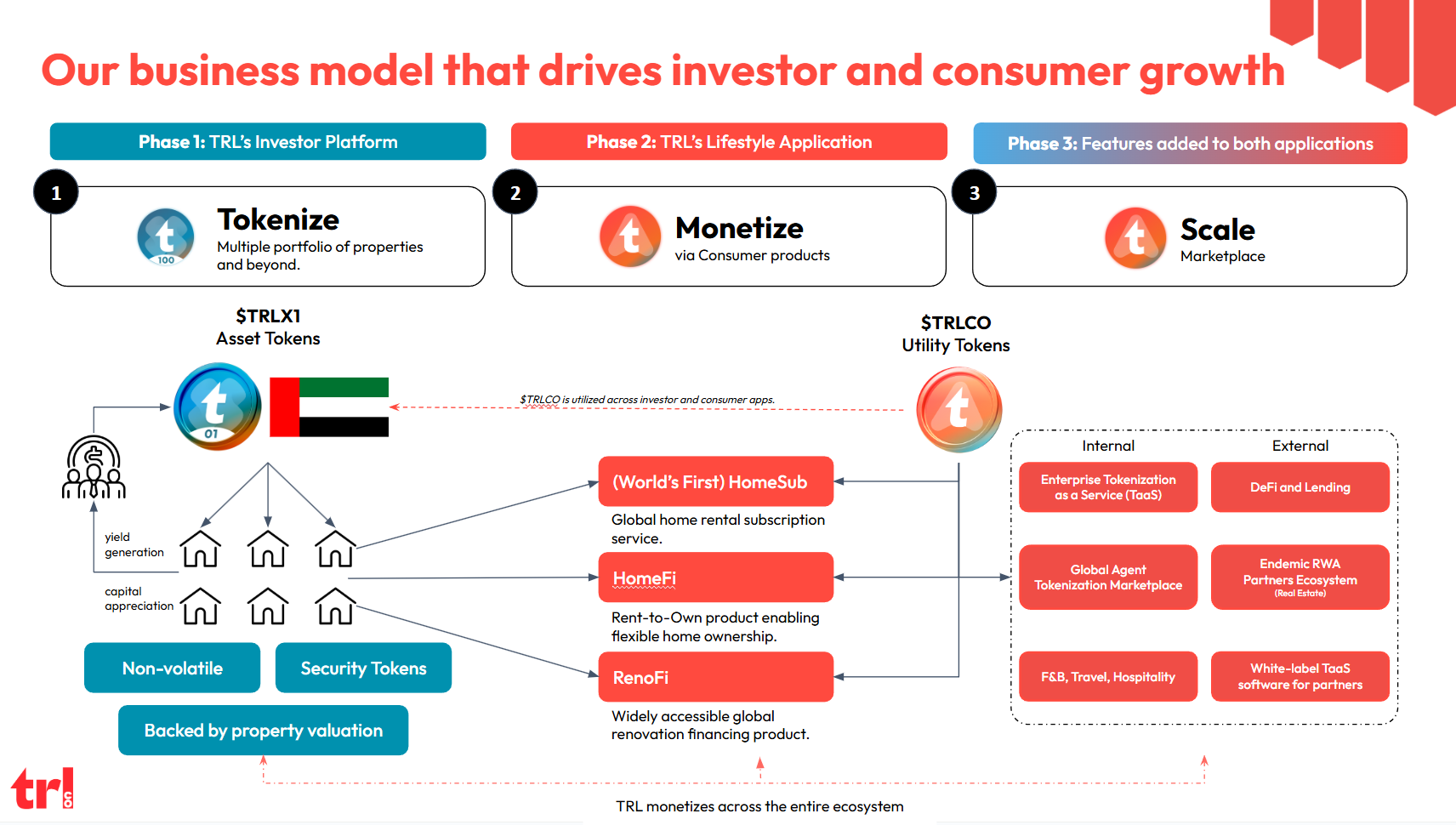 In the short term, we offer investors a solution to invest in multiple properties with a single click, at a fraction of the cost, allowing for greater diversification and a less risky approach to yield generation. This includes incorporating decentralized finance (DeFi) features, such as lending and borrowing, which enable investors to maximize their returns while enjoying seamless access to a variety of asset classes. By bridging these gaps, TRL aims to revolutionize how real estate is invested in and managed, providing a more dynamic and efficient platform for all participants.