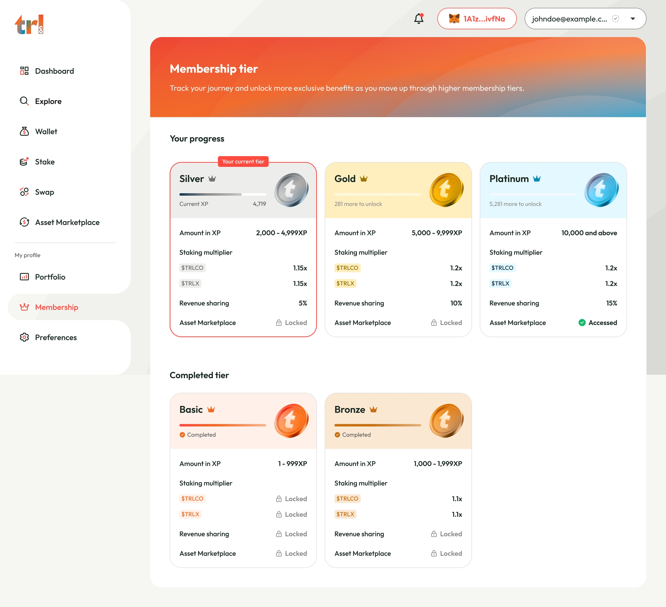 TRL is excited to introduce staking and tiering benefits for our loyal and early supporters. Simply put, the more you stake, the greater the rewards you receive. This system is designed to incentivize long-term commitment and active participation within our ecosystem.